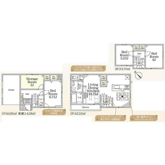 新築売戸建住宅 江戸川区 西瑞江4丁目 (一之江駅) 3階建 3SLDK