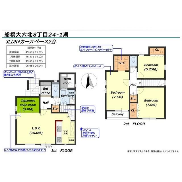 新築売戸建住宅 船橋市 大穴北8丁目 2階建 3LDK