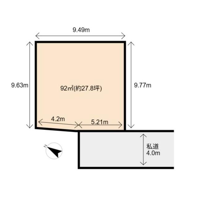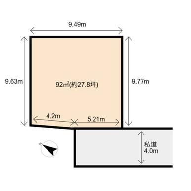 | 接道状況 | 南西4.0m 私道 | 地目 | 雑種地 |